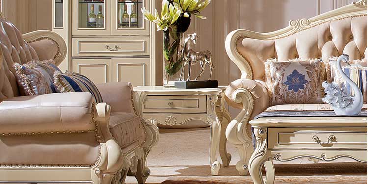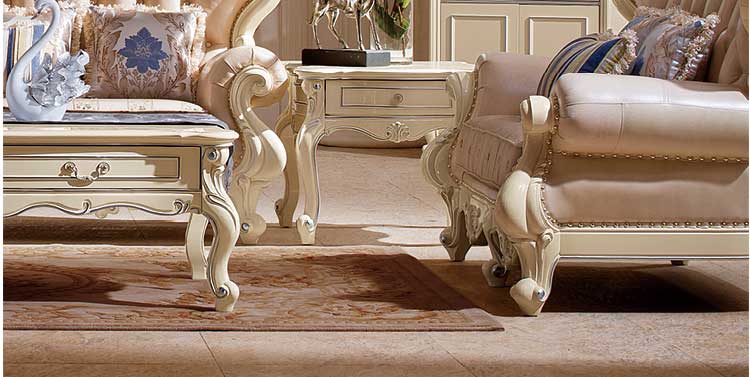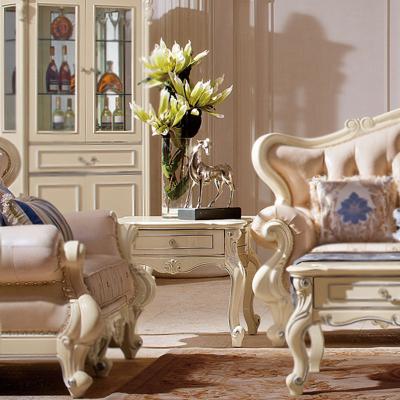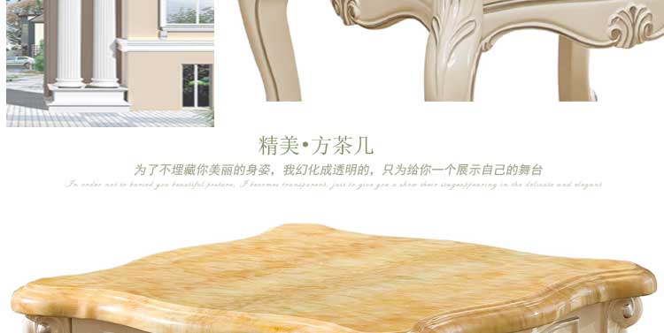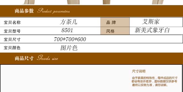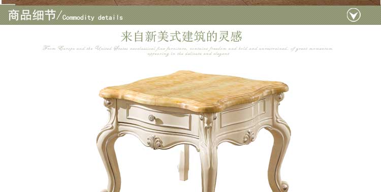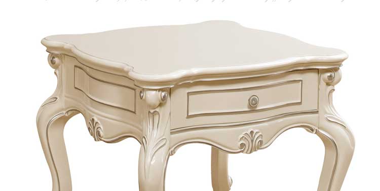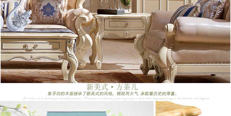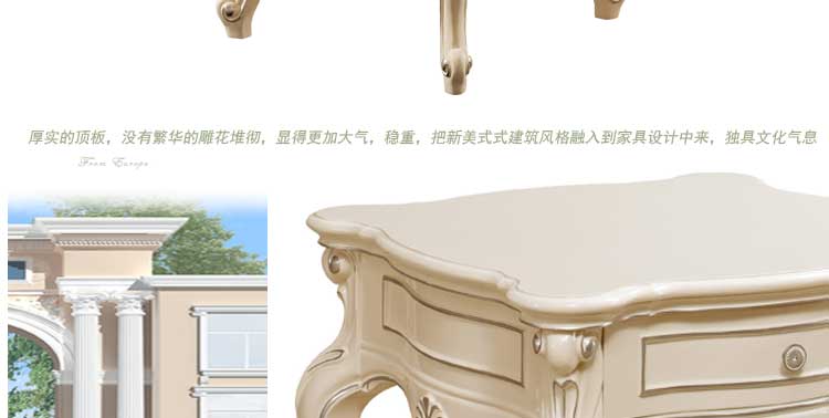 艾斯家象牙白美式实木方茶几复古古典做旧方茶几边桌客厅茶桌8501