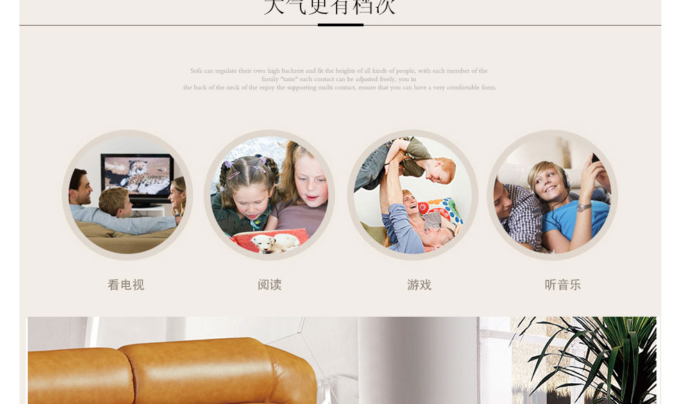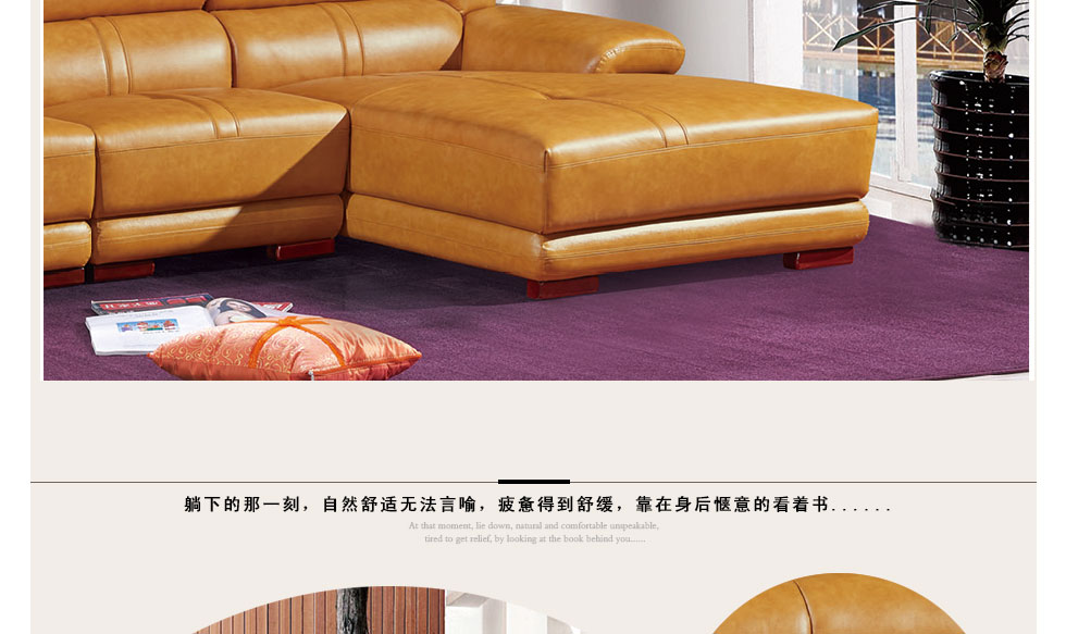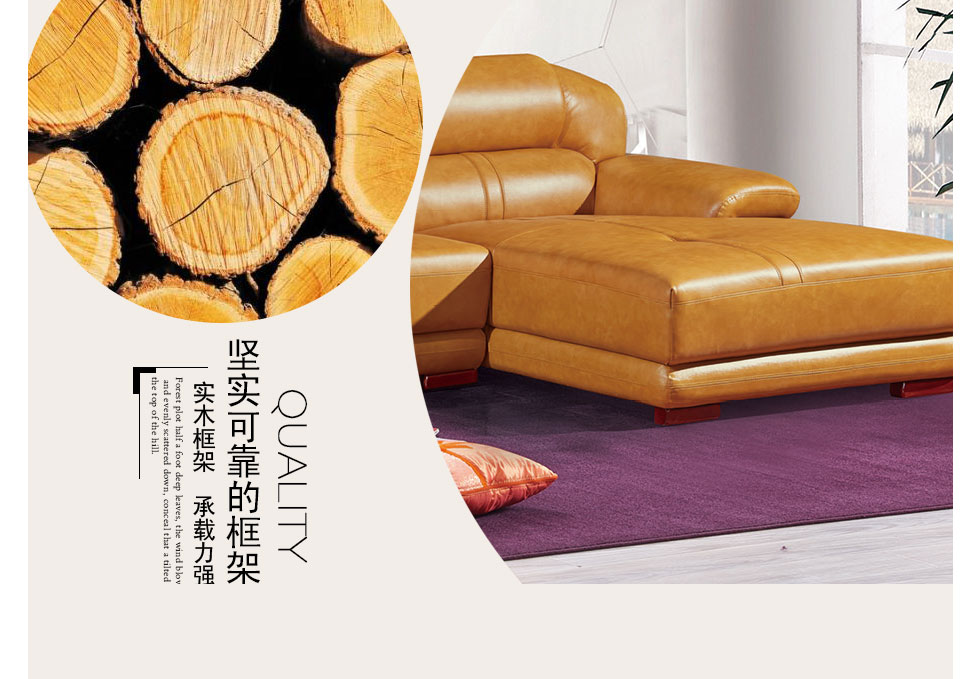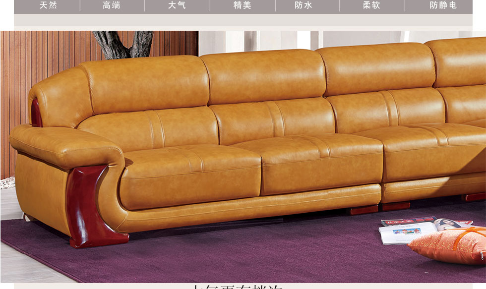 悍尼现代简约客厅贵妃位真皮皮艺组合休闲贵妃功能沙发130#