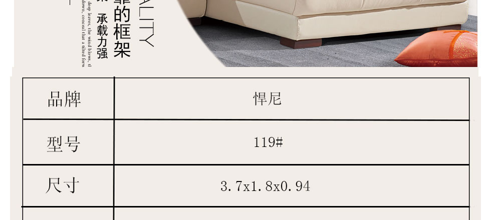 悍尼 层牛皮真皮沙发组合 简约现代大小户型客厅皮艺沙发 119#
