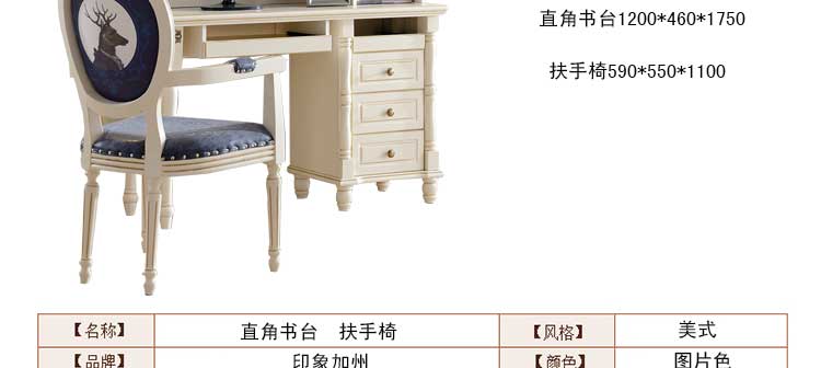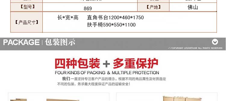 外围尺寸:直角书台1200*460*1750 扶手椅590*550*1100