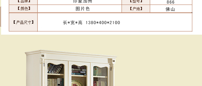 厂家直销印象加州书房三门书柜小美简约书柜超大储藏带抽书柜866
