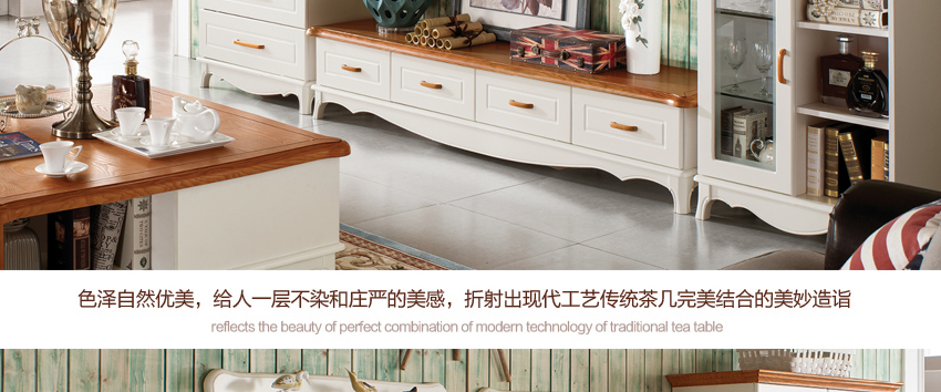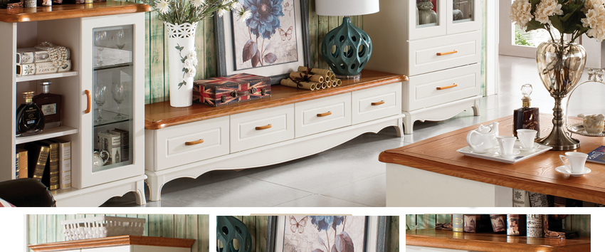 至美系列美式乡村风格实木品质地柜 客厅存物摆放组合酒柜电视柜