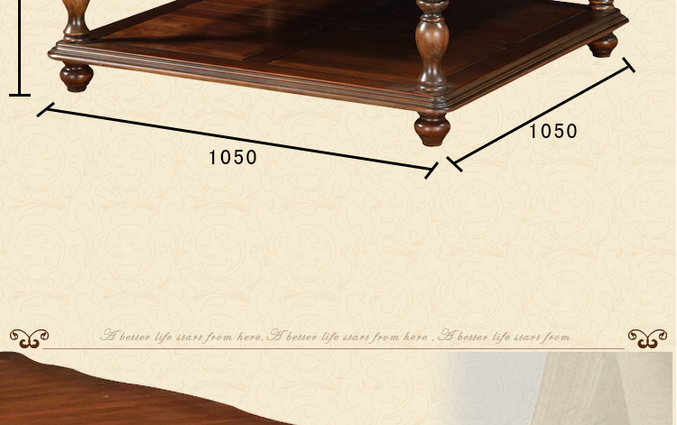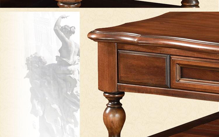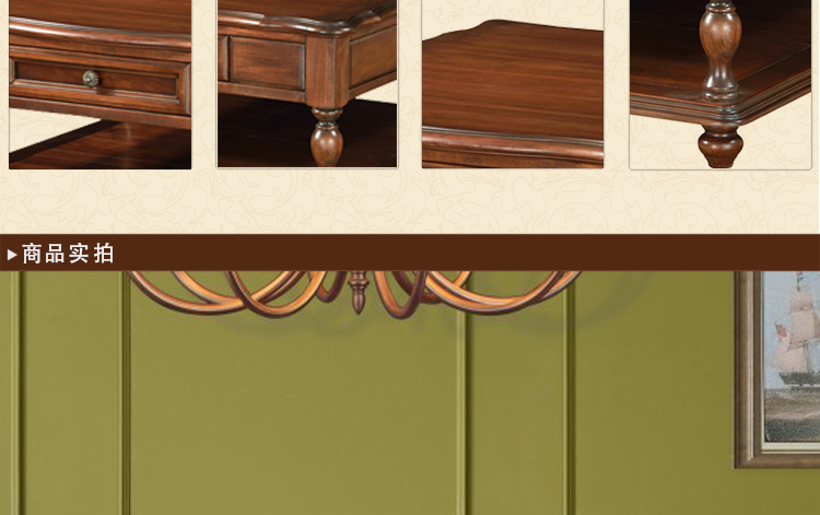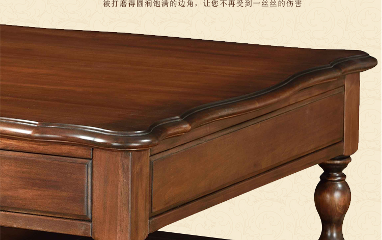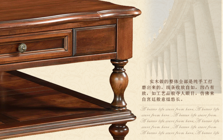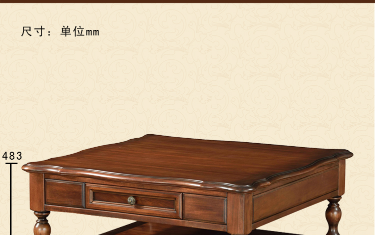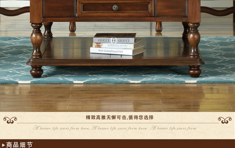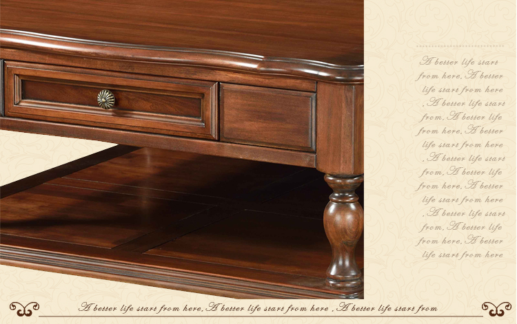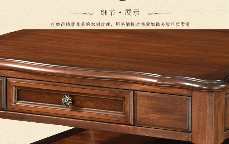 曲富美式乡村方茶几美式茶几美式咖啡桌带抽屉储物柜胡桃木客厅家具M8209