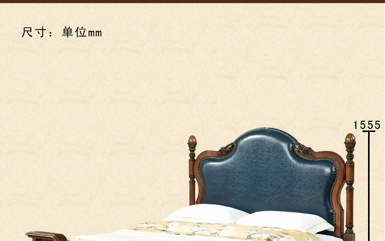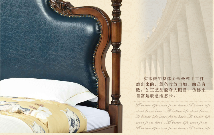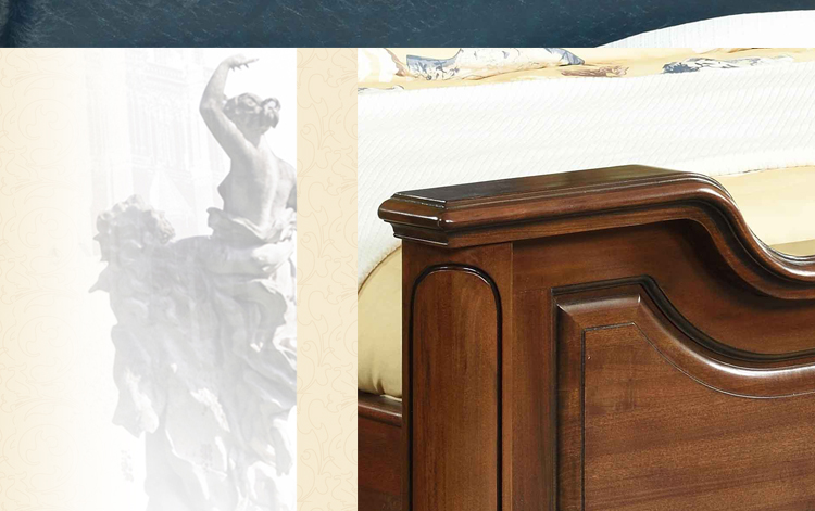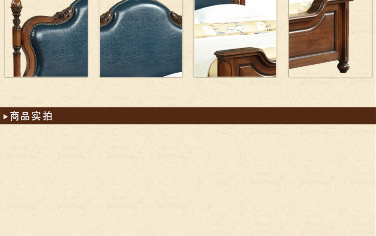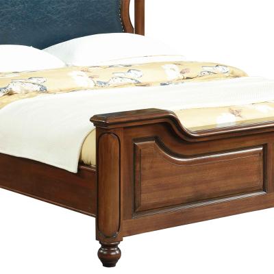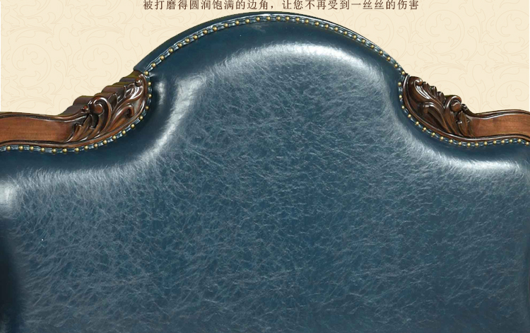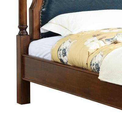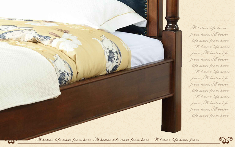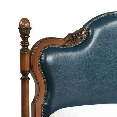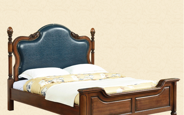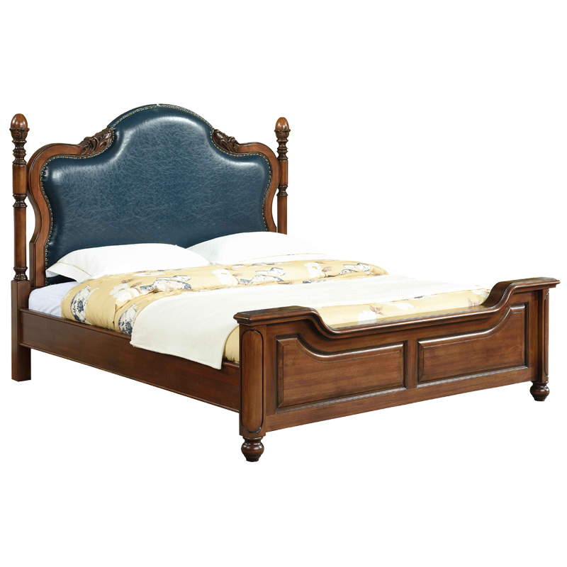 曲富美式床实木真皮全实木软靠双人床新古典深色乡村婚床实木家具M5102