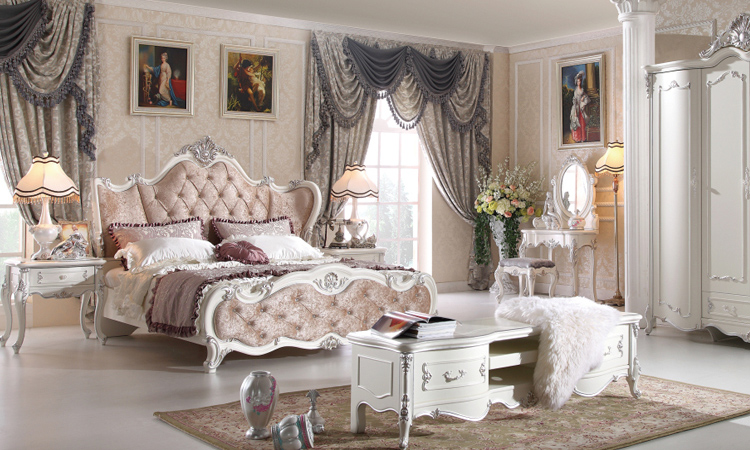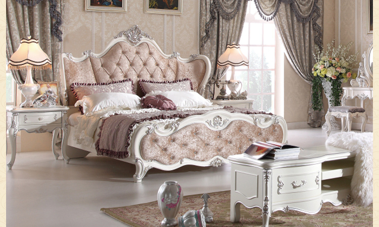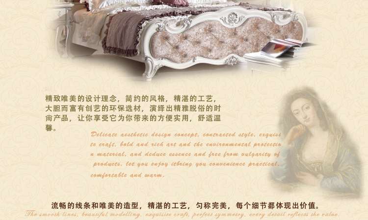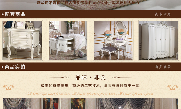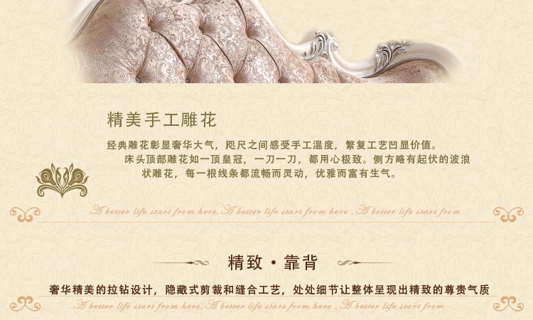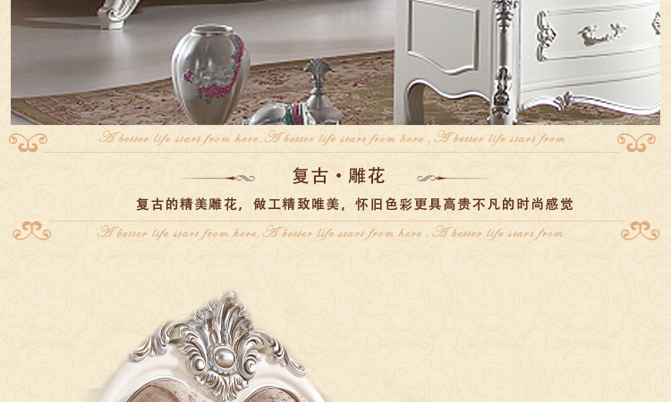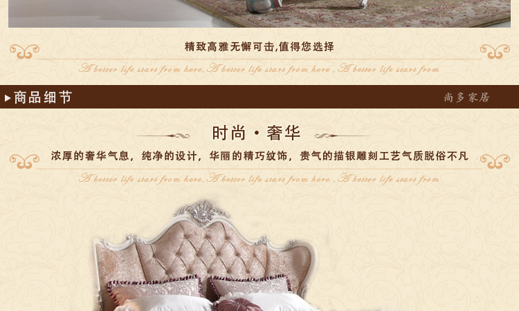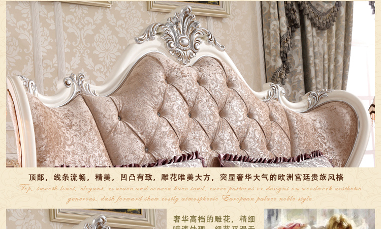 尚多家居 BT802 象牙白+银箔做旧 法式雕花 布艺软包床头1.5米1.8米双人床婚床