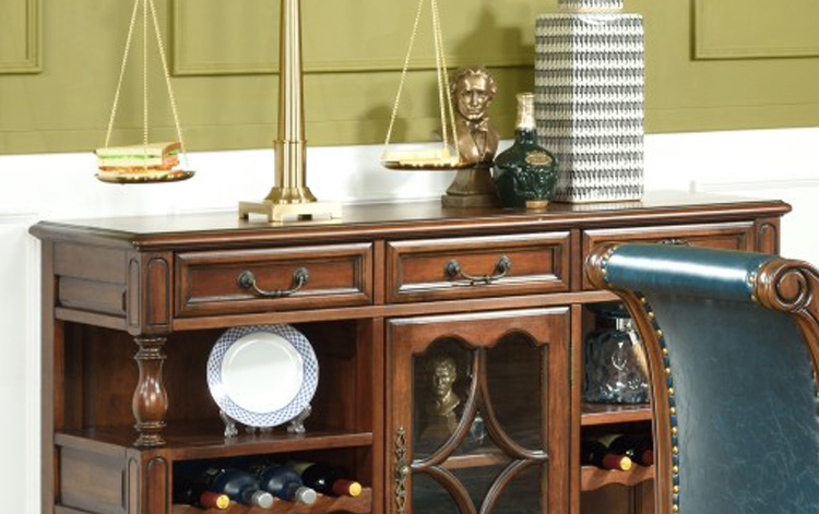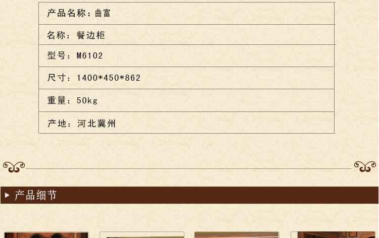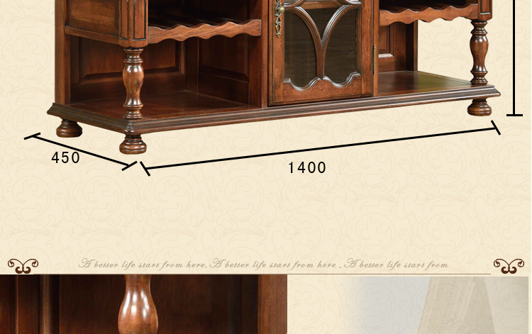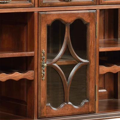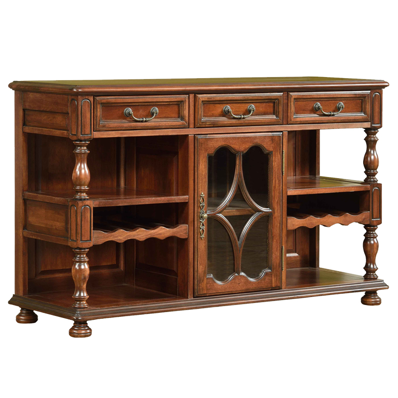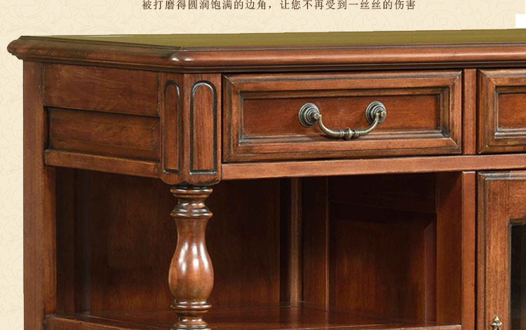 曲富美式餐边柜美式实木餐厅柜子复古备餐柜美式乡村酒柜碗柜储物柜M6102