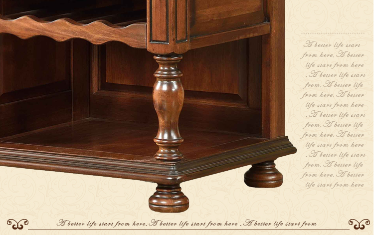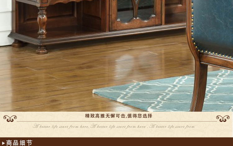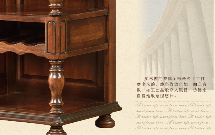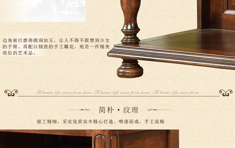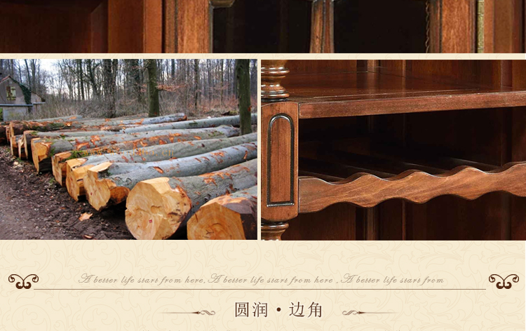 美式古老工艺技法,精雕细琢,完美极致。传达出美式风格的实木家具。木板采用的都是100%实木,防潮防腐防蛀超环保。木艺家具浑厚沉实、明朗高尚的独特韵味及风格。让您的家独具一格!