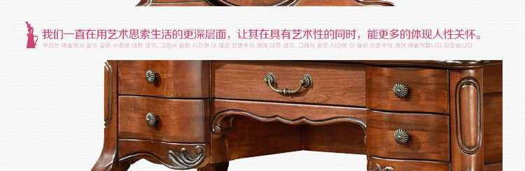 美式古老工艺技法,精雕细琢,完美极致。传达出美式风格的实木家具。木板采用的都是100%实木,防潮防腐防蛀超环保。木艺家具浑厚沉实、明朗高尚的独特韵味及风格。让您的家独具一格!