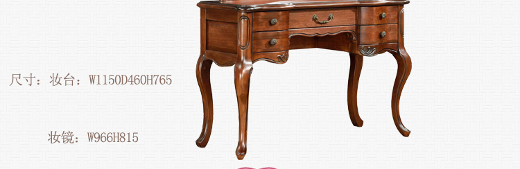 尺寸:妆台:W1150D460H765mm ; 妆镜: W966H815mm