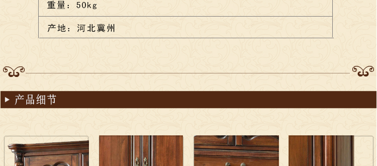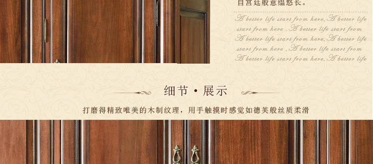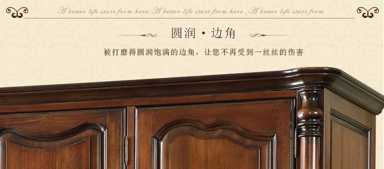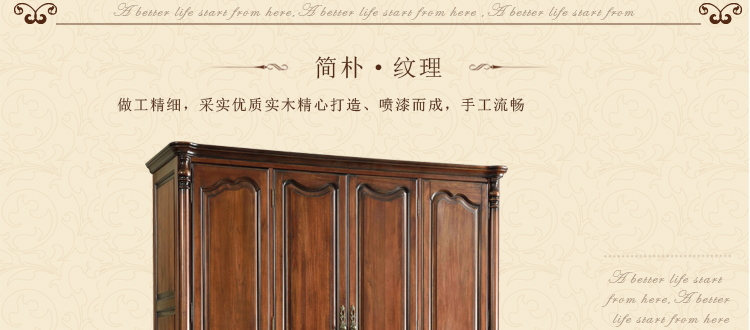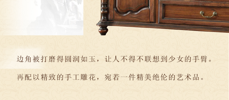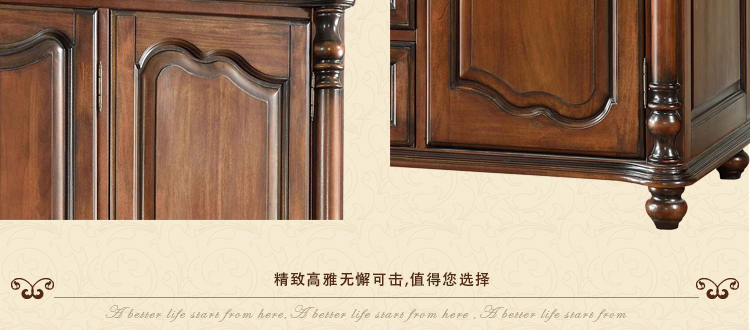 美式古老工艺技法,精雕细琢,完美极致。传达出美式风格的实木家具。木板采用的都是100%实木,防潮防腐防蛀超环保。木艺家具浑厚沉实、明朗高尚的独特韵味及风格。让您的家独具一格!