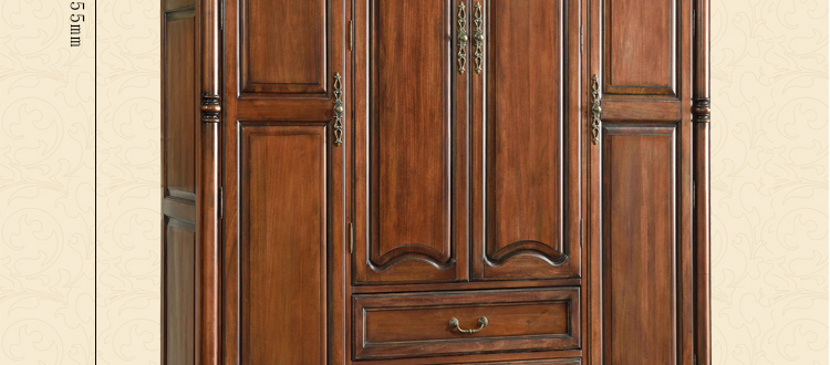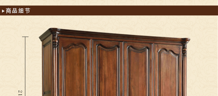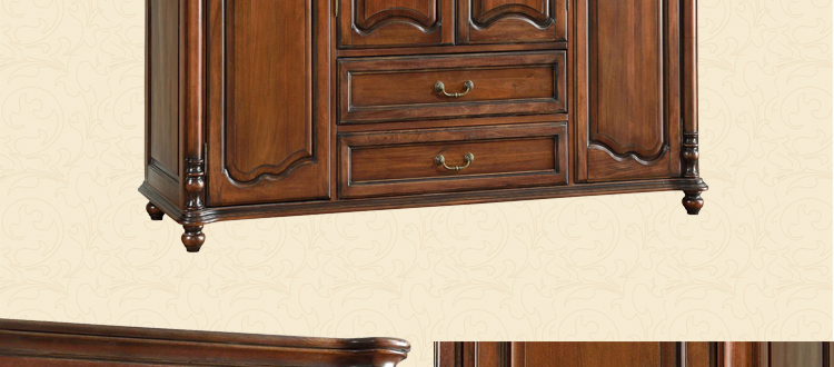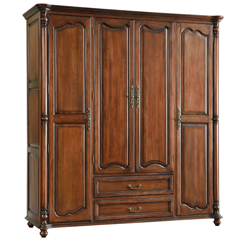 曲富美式乡村家具实木四门组合衣柜整体衣柜卧室顶柜大衣橱M5302
