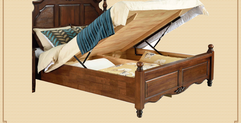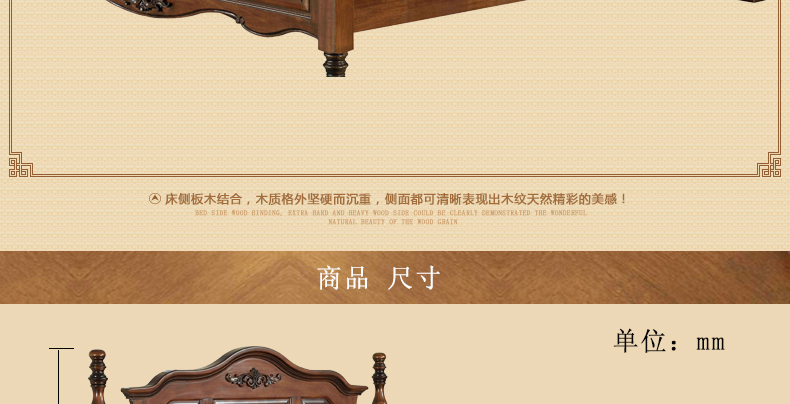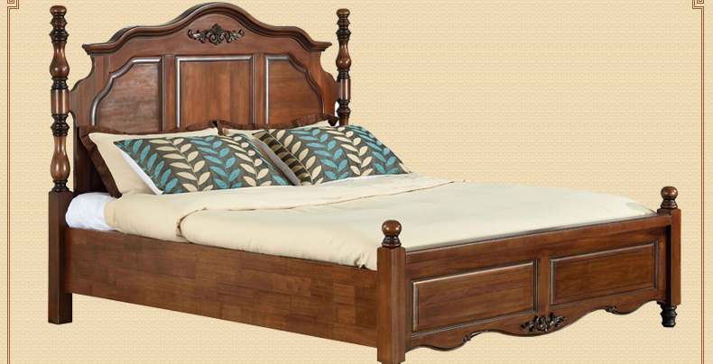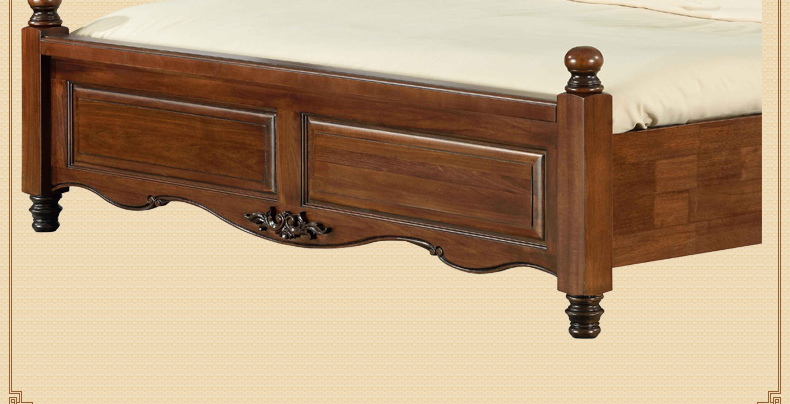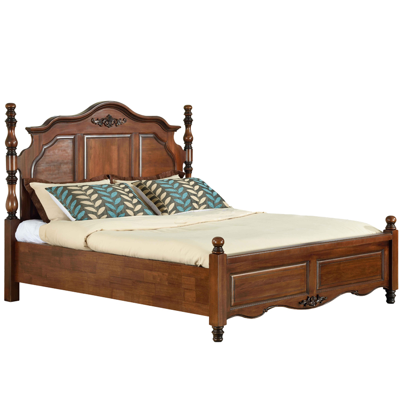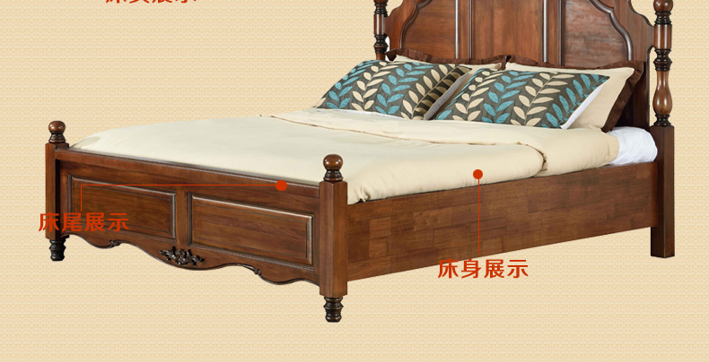 曲富实木双人床欧美式床乡村排骨架床1.8米胡桃木家具婚床M5107