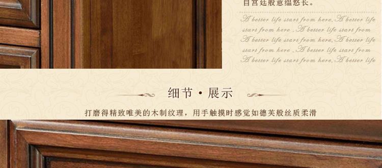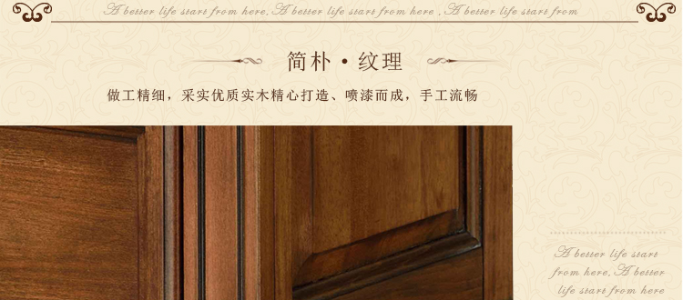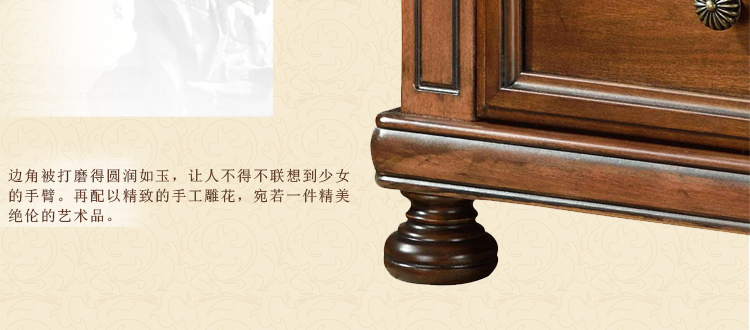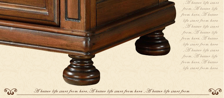 美式古老工艺技法,精雕细琢,完美极致。传达出美式风格的实木家具。木板采用的都是100%实木,防潮防腐防蛀超环保。木艺家具浑厚沉实、明朗高尚的独特韵味及风格。让您的家独具一格!