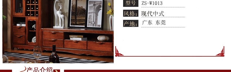 金木旺家 实木电视柜中式简约2.4米电视机柜中式地柜 ZS-W1013