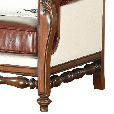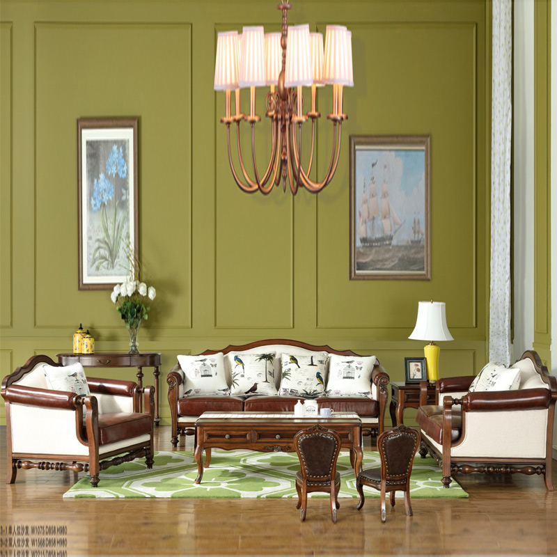 曲富美式沙发简美真皮全实木沙发组合美式皮布沙发客厅家具沙发M8103