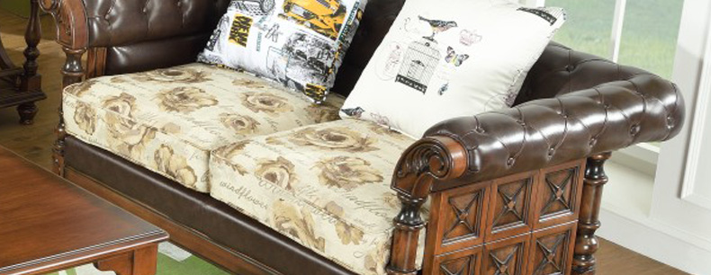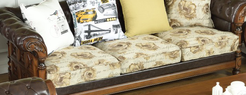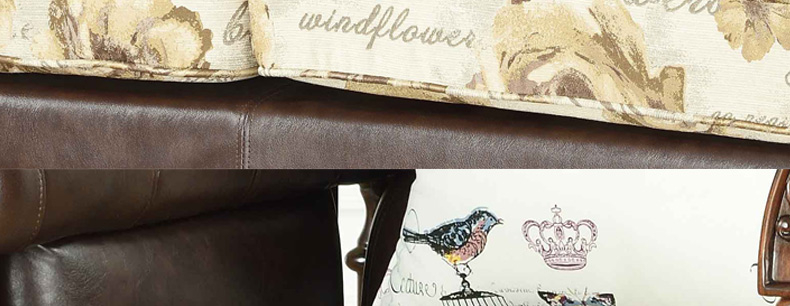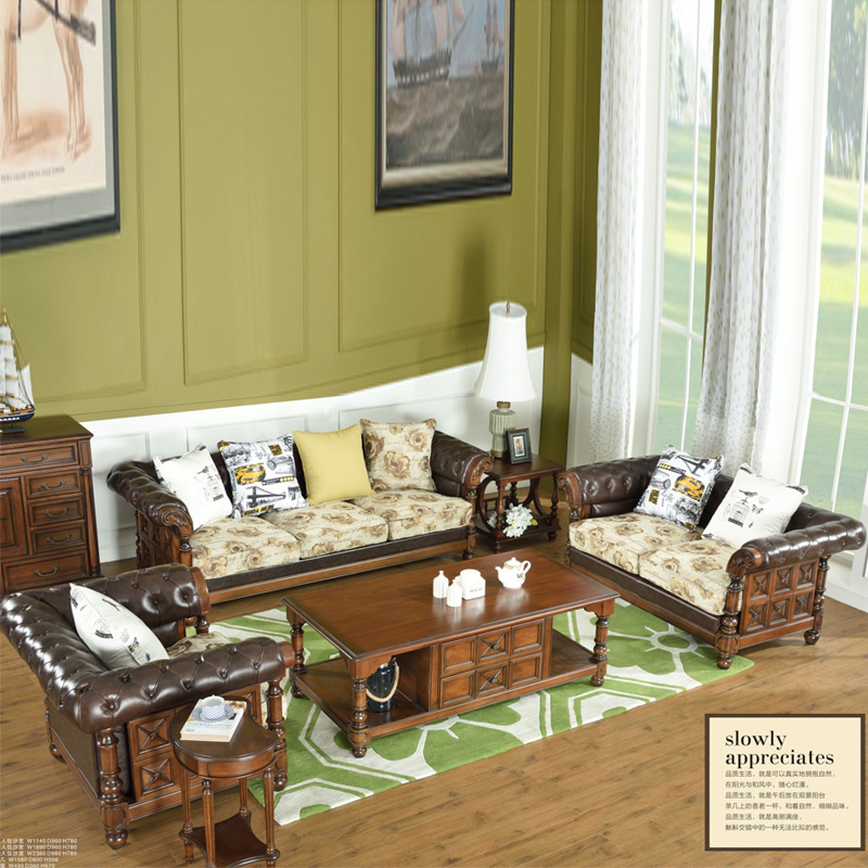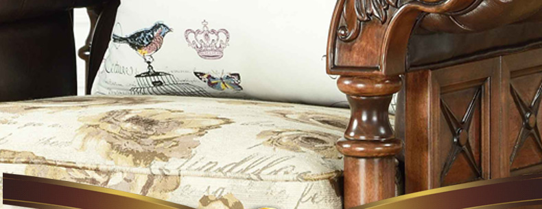 曲富美式豪华皮布沙发雕花客厅绒布可拆洗美式实木胡桃木组合沙发M8102