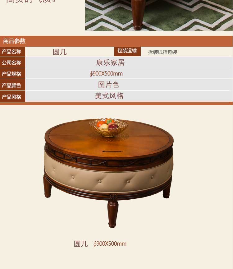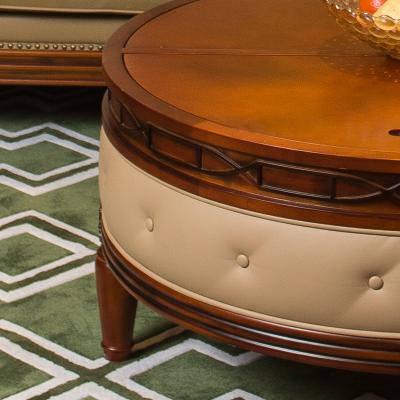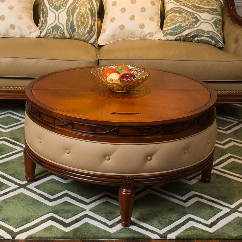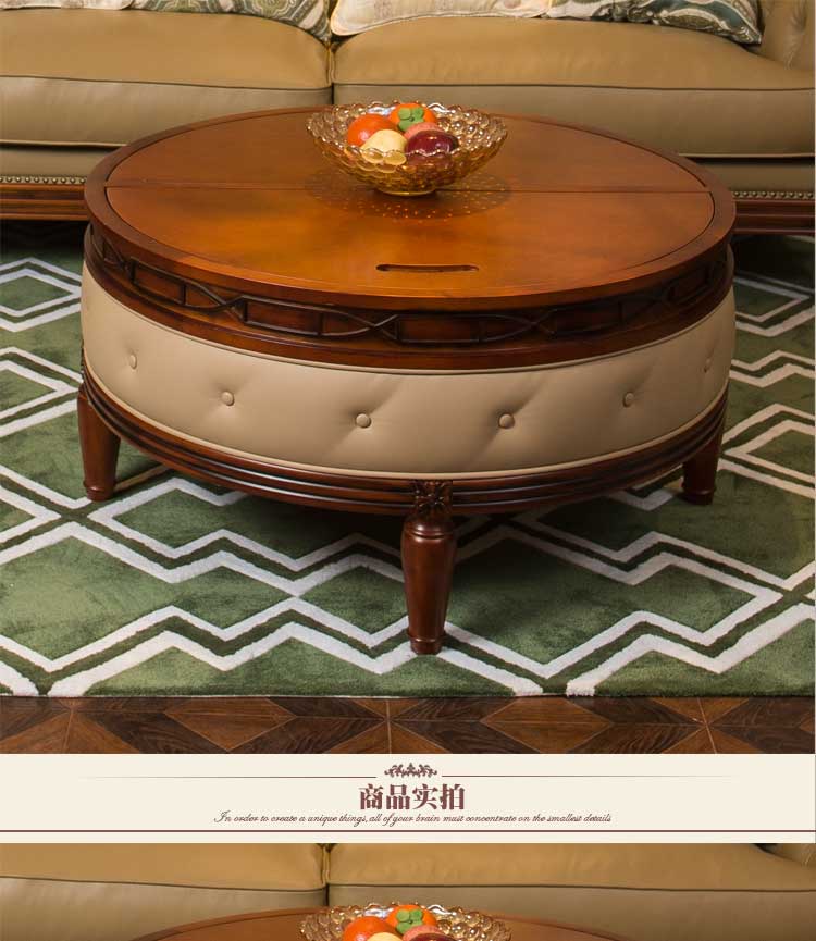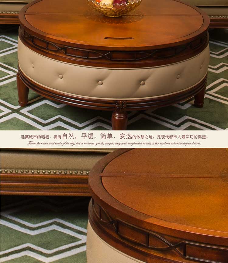 康乐家居实木雕刻小圆几美式奢华复古茶几客厅沙发储物圆几 L006-04-01