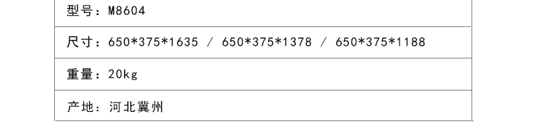 外围尺寸:高:650*375*1635mm 中:650*375*1378mm 低:650*375*1188mm