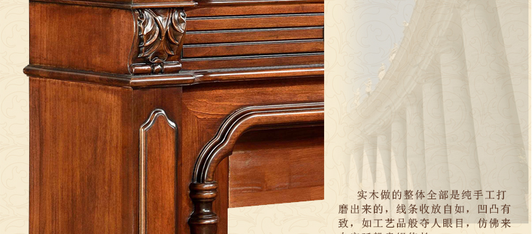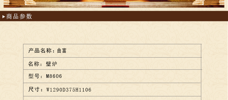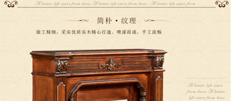 曲富简约美式壁炉 实木美式壁炉架 深色装饰取暖炉芯1.2电壁炉M8606