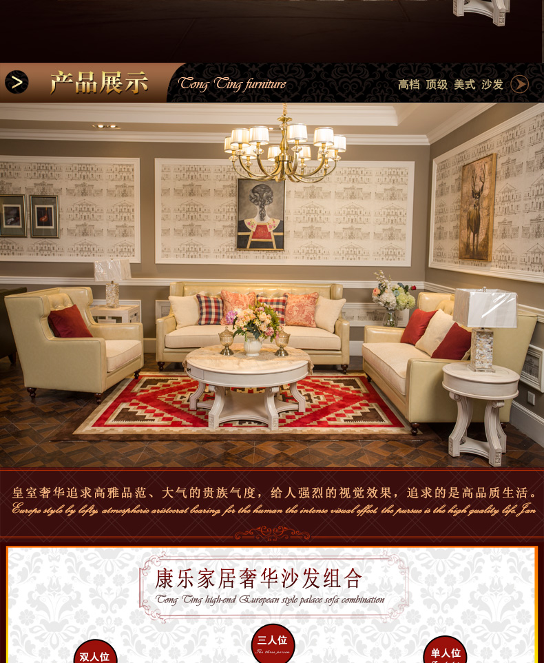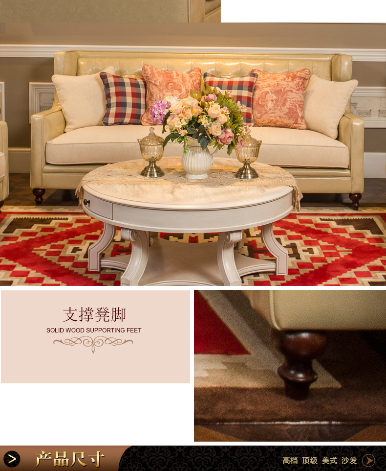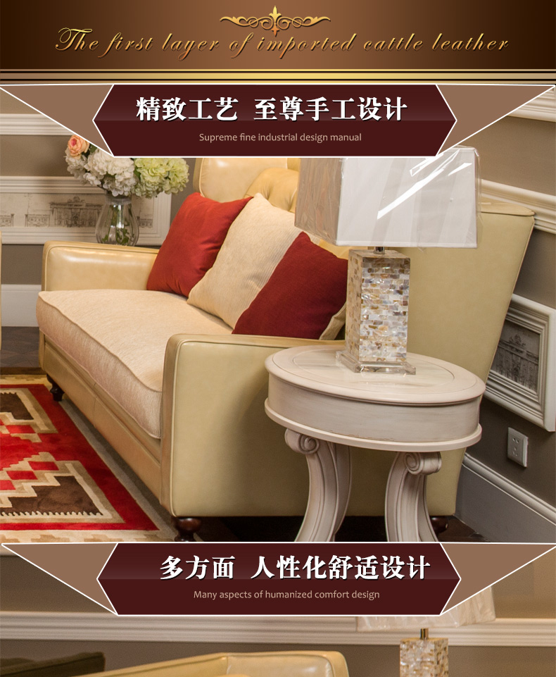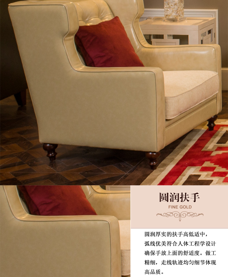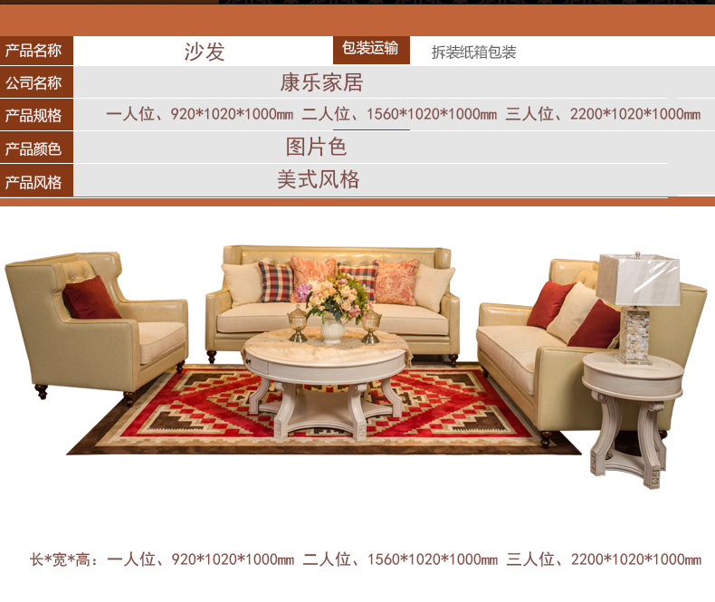 康乐家居 美式布艺+皮艺沙发组合 简约美式家具 新古典别墅沙发KL9042