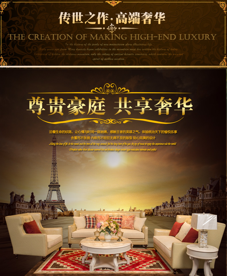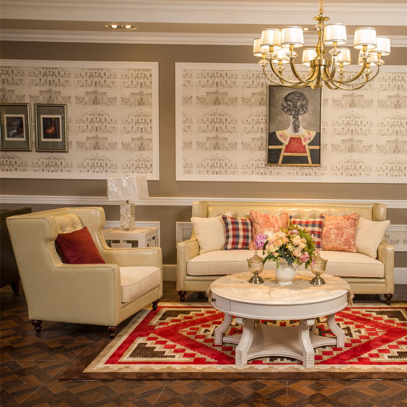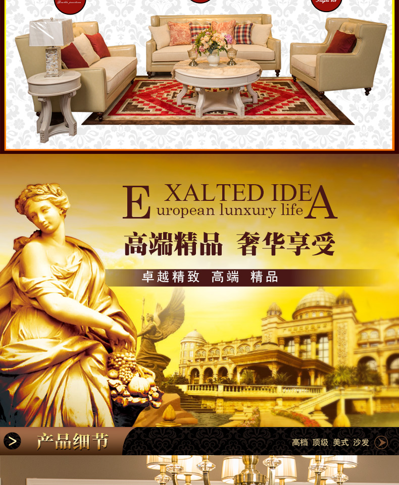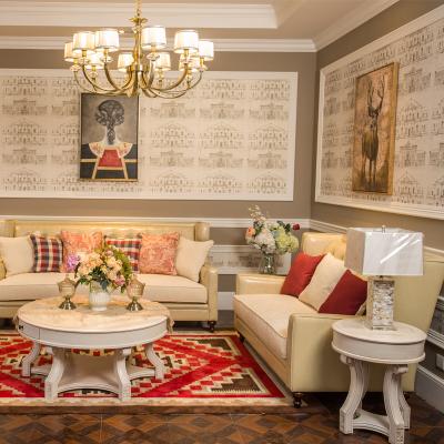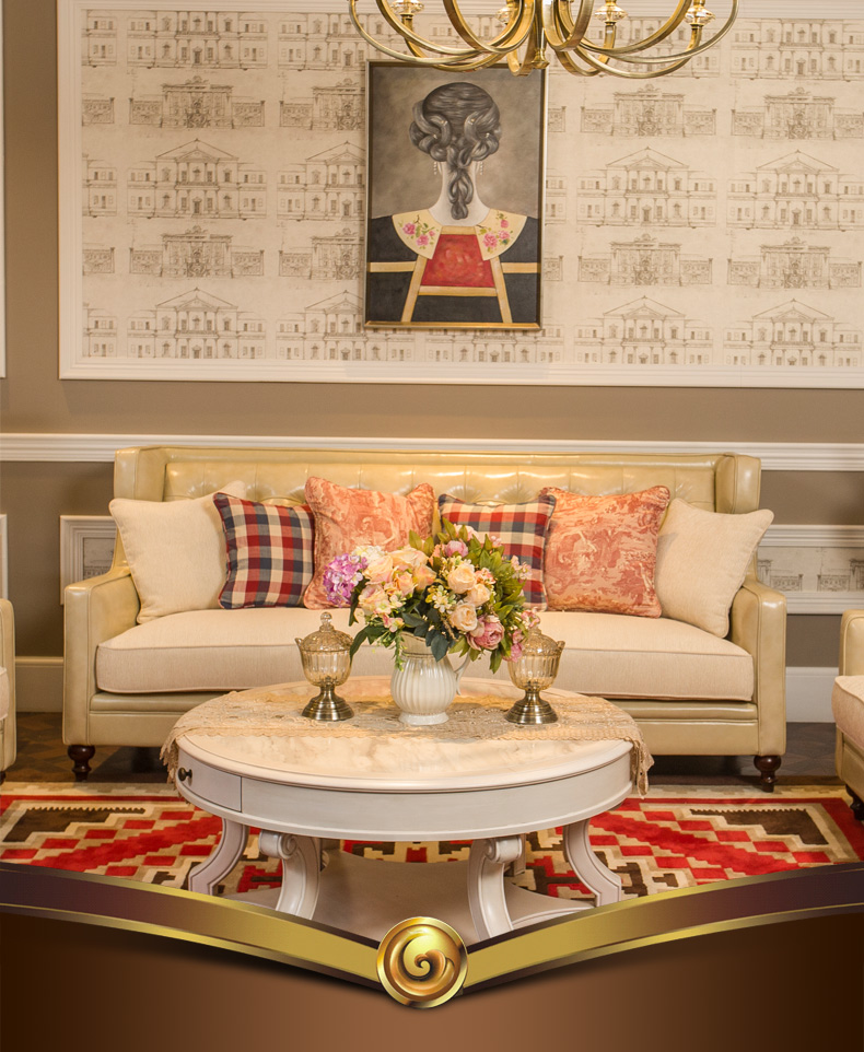 康乐家居 美式布艺+皮艺沙发组合 简约美式家具 新古典别墅沙发KL9042