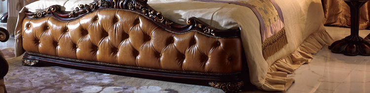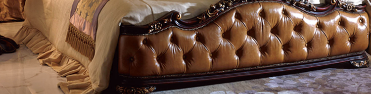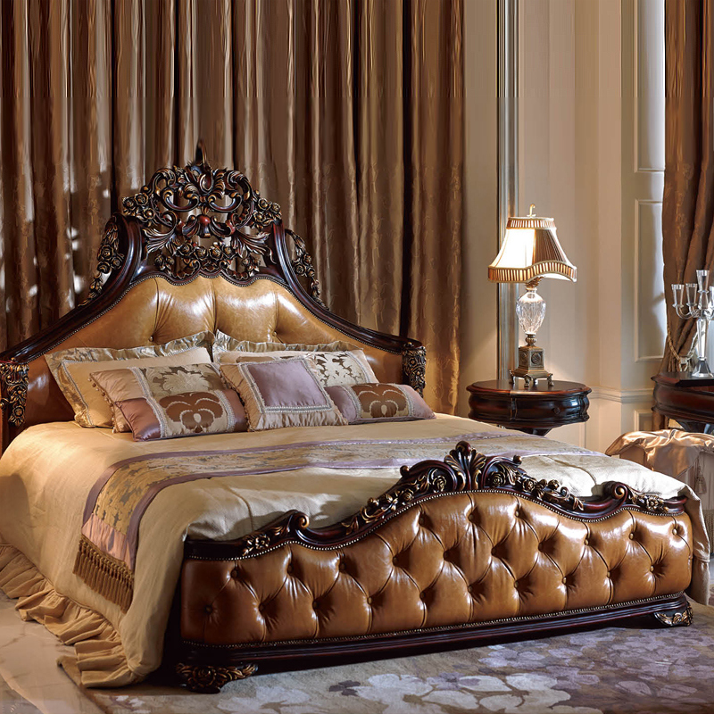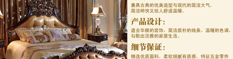 乔驰法式复古雕花卧室双人床樱桃描金家庭古典皮艺方形大床1A17