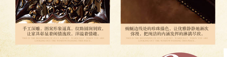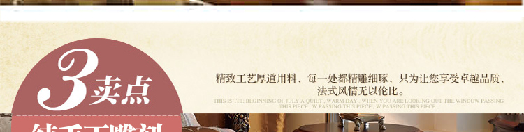 家具十分推崇优雅、高贵和浪漫,它是一种基于对理想情景的考虑,追求建筑的诗意、诗境,力求在气质上给人深度的感染。艺术风格最集中体现在家具的设计方面,要特征在于布局上突出轴线的对称,恢宏的气势,高贵典雅。细节处理上注重雕花、线条,制作工艺精细考究。