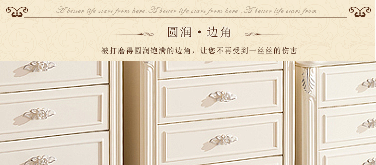 右岸嘉园欧式斗柜斗橱实木柜欧式三四五斗储物柜白色田园抽屉柜601