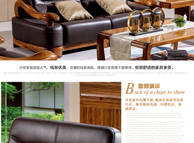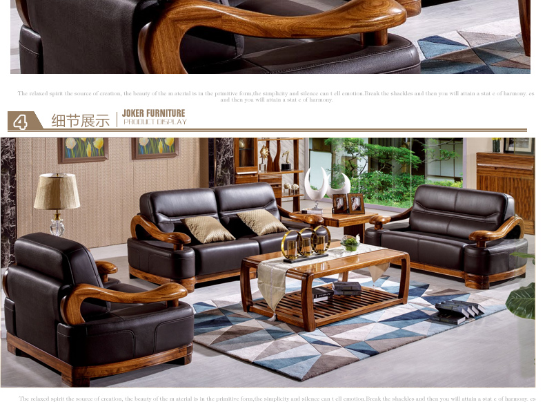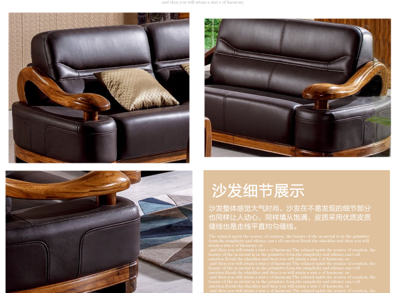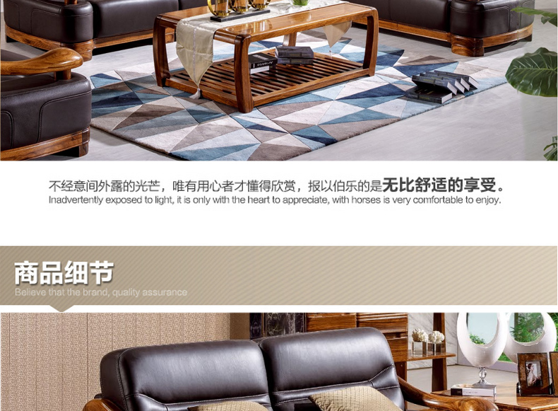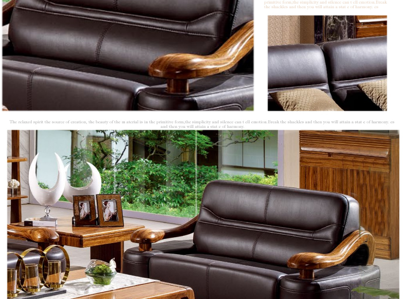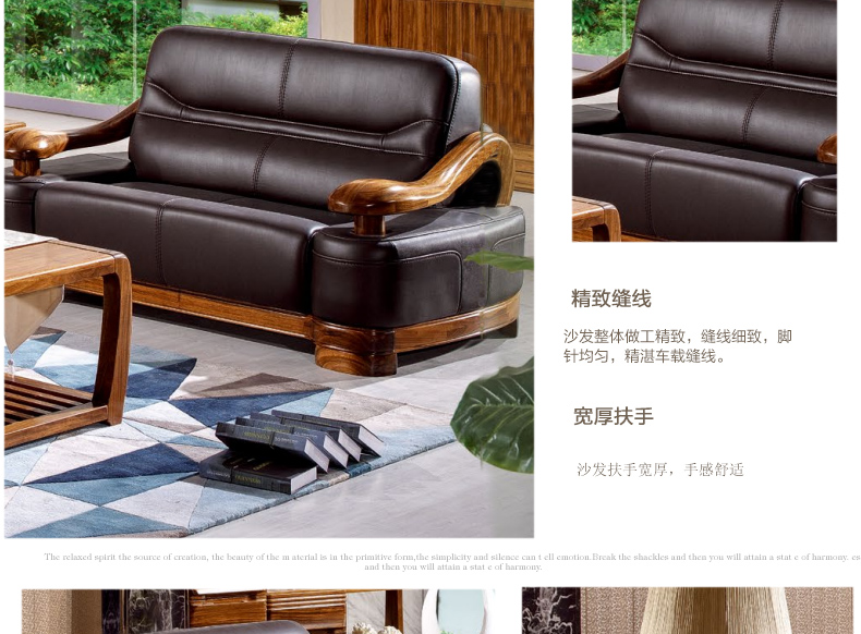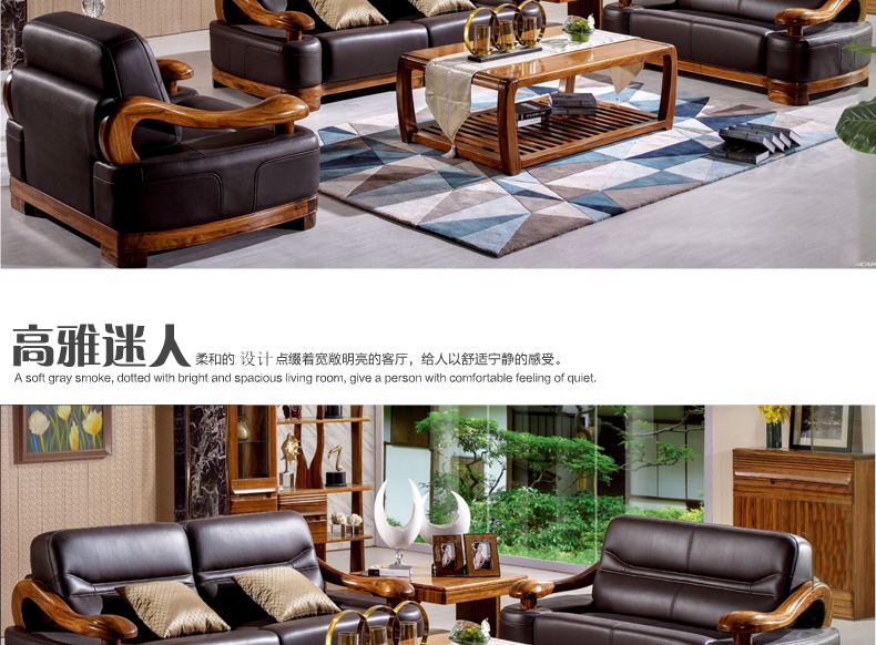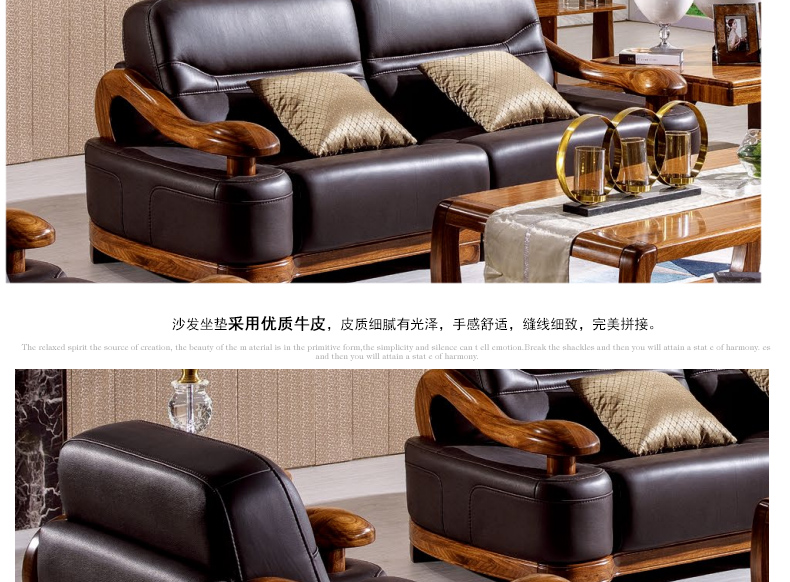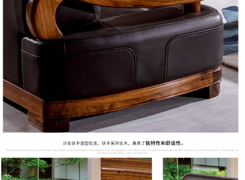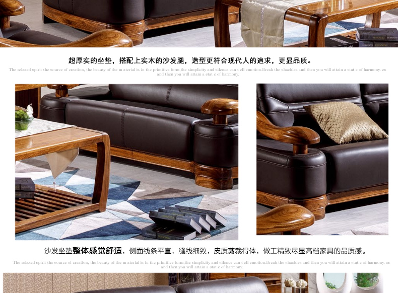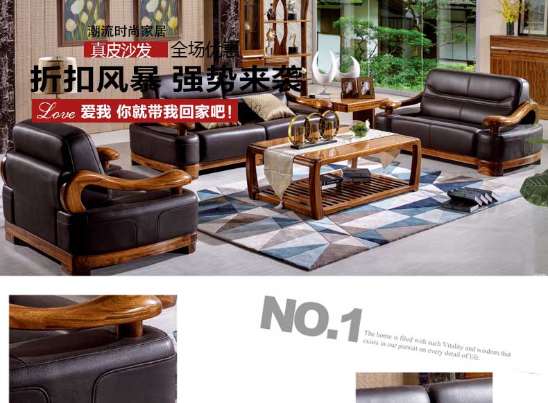 乌金一号 现代新款沙发组合皮艺木艺结合沙发组合1.2.3人位沙发组合WJ501#