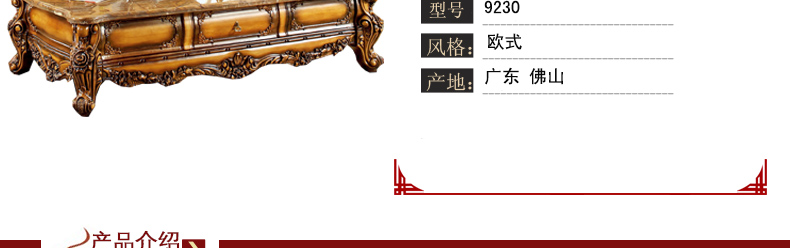 大旗 欧式实木茶几实木雕花奢华客厅新古典长几茶桌茶几 9230