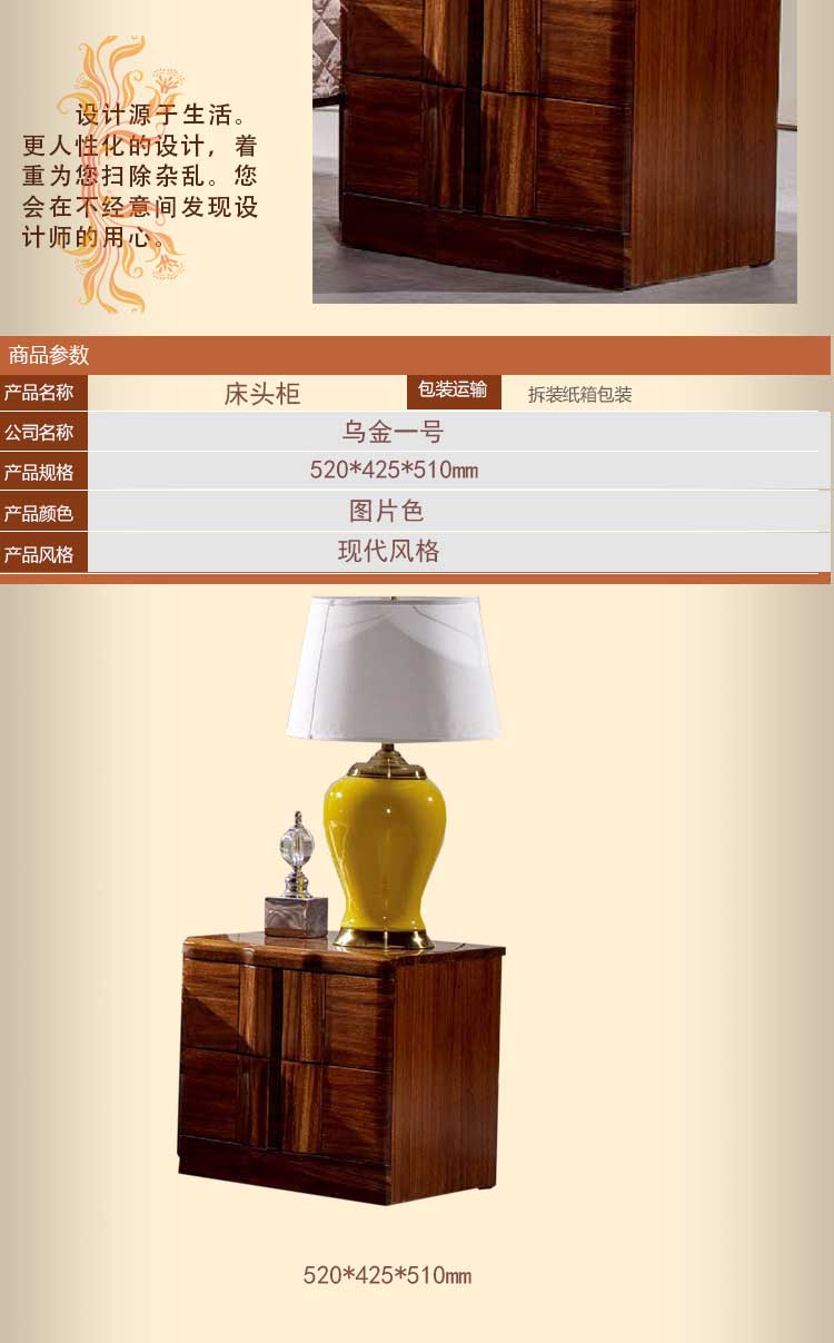 乌金一号 现代床头柜实木现代简约床边柜收纳柜储物柜WJ802#