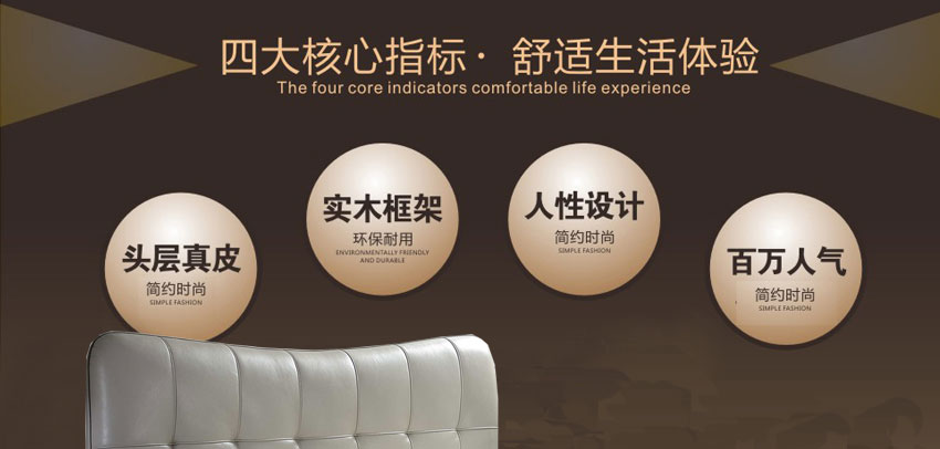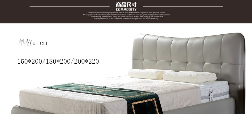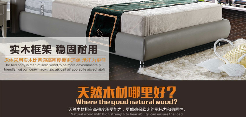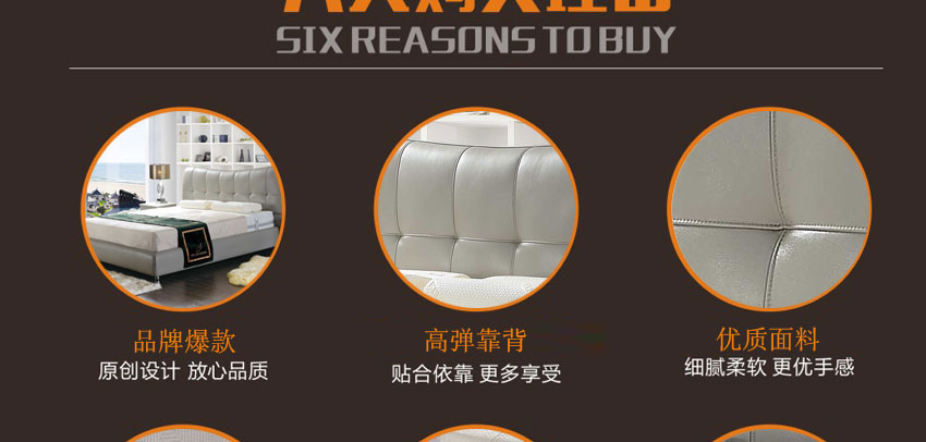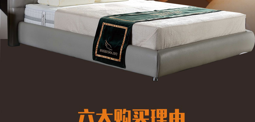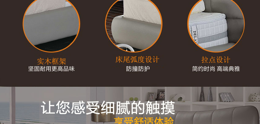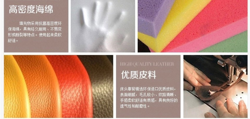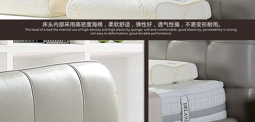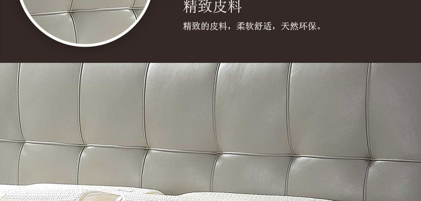1.精选牛皮,实木框架结构,加固高受力排骨架承受力更强,高密度耐压海棉,非常饱满,使靠背更加舒适,专利设计,仅此一家。2.不含甲醛,环保健康,让买家享受更舒适的睡眠