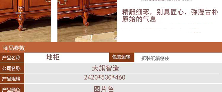 大旗智造 高端欧式家具电视柜客厅实木欧式电视机墙柜雕花地柜 DA820