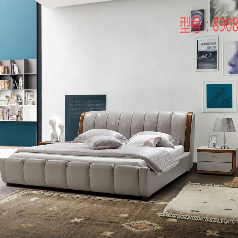 凯度 现代经典简约大小户型真皮床皮艺床双人床1.8米软床婚床8908