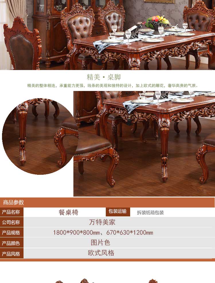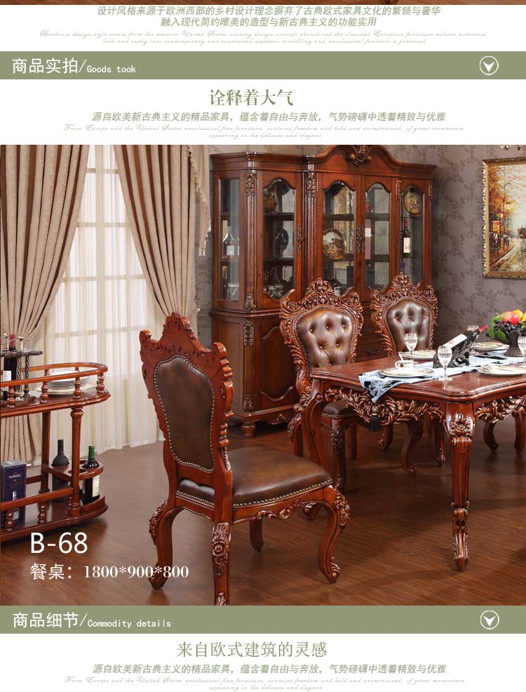 万特美家 欧式餐桌椅组合 欧式实木长方形餐台 B68