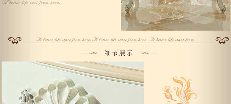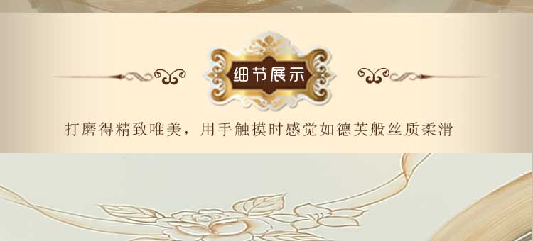 欧式风格家具特点讲究手工精细的裁切雕刻,轮廓和转折部分由对称而富有节奏感的曲线或曲面构成,结构简练,线条流畅,色彩富丽,艺术感强,给人的整体感觉是华贵优雅,十分庄重。