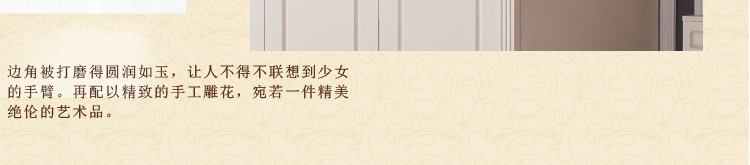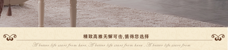 欧式风格家具特点讲究手工精细的裁切雕刻,轮廓和转折部分由对称而富有节奏感的曲线或曲面构成,结构简练,线条流畅,色彩富丽,艺术感强,给人的整体感觉是华贵优雅,十分庄重。