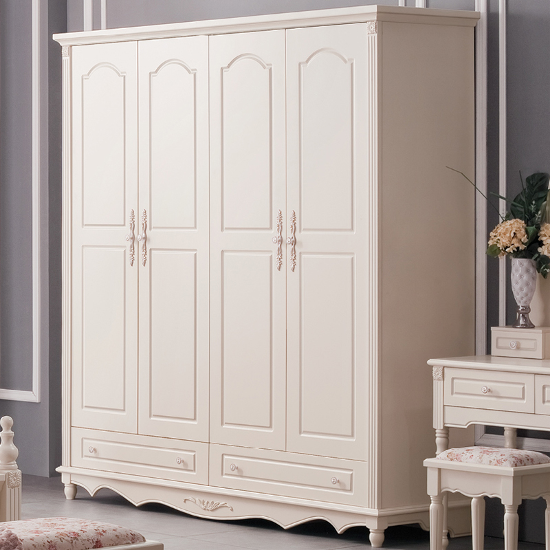 奥迪克欧式简约实木衣柜白色典雅时尚创意雕花储物四门衣柜M9303D