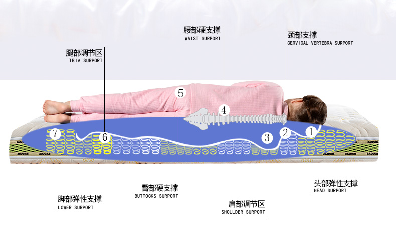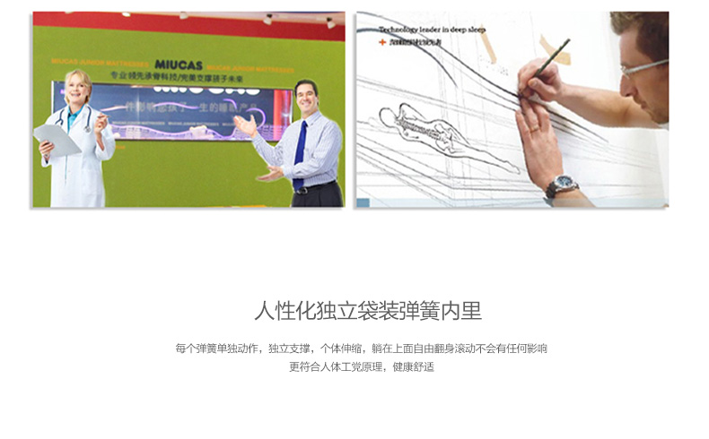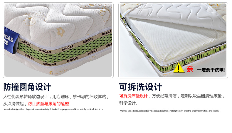 MIUCAS/妙卡思五区独立袋弹簧床垫 1.2 1.5米席梦思 儿童单人订做F02-A