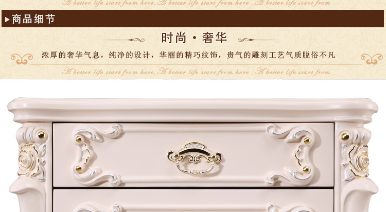 床头柜很漂亮,美美的,欧式风格,是我想要的,质量也是杆杆的,需要的不要犹豫哦,快下手啊。