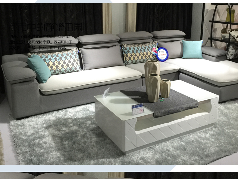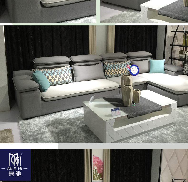 慕驰简约现代大户型布艺沙发L型可拆洗布沙发组合家具S052B