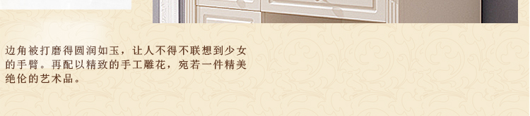 欧式风格家具特点讲究手工精细的裁切雕刻,轮廓和转折部分由对称而富有节奏感的曲线或曲面构成,结构简练,线条流畅,色彩富丽,艺术感强,给人的整体感觉是华贵优雅,十分庄重。