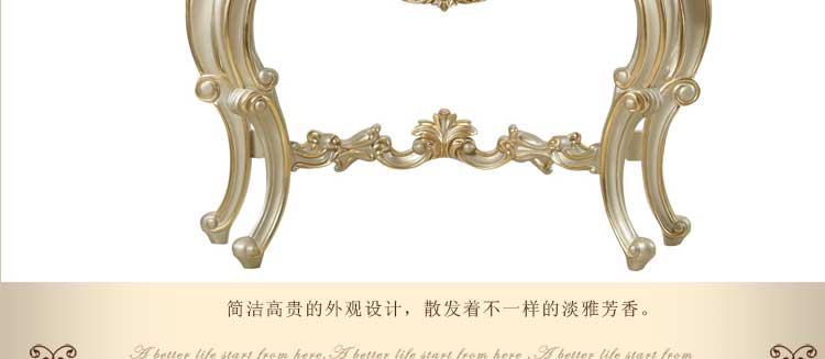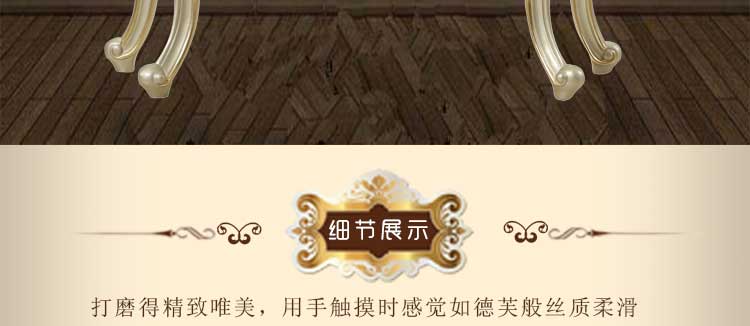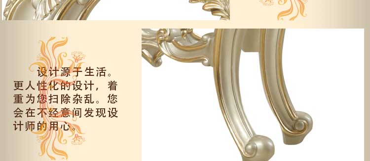 欧式风格家具特点讲究手工精细的裁切雕刻,轮廓和转折部分由对称而富有节奏感的曲线或曲面构成,结构简练,线条流畅,色彩富丽,艺术感强,给人的整体感觉是华贵优雅,十分庄重。