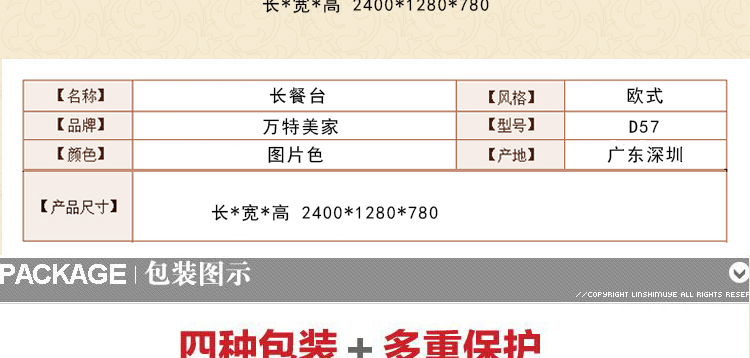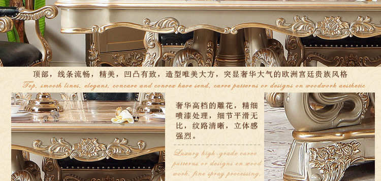 万特美家 欧式长餐台奢华雕花桌子餐桌实木新款长餐桌百搭款D57长餐台