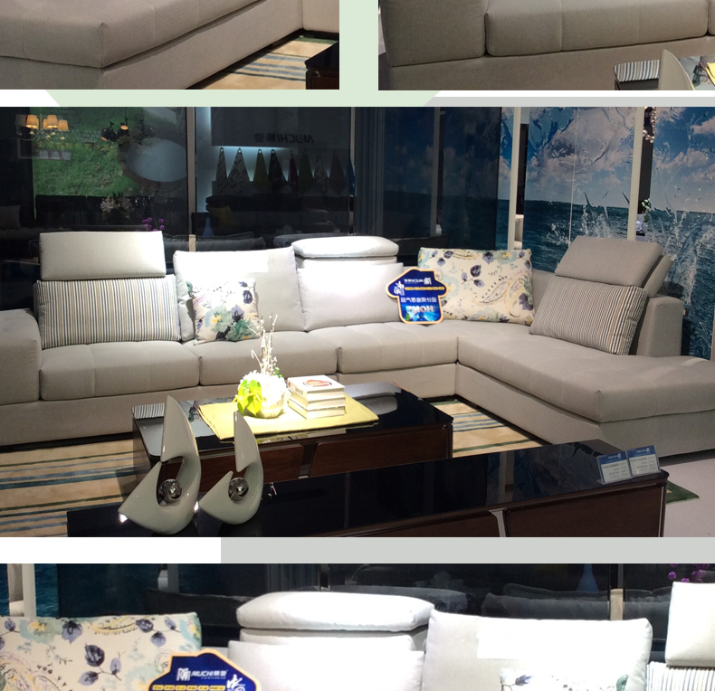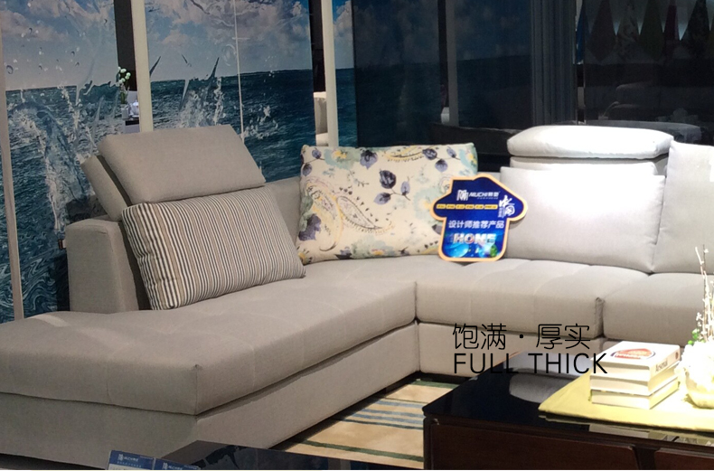 慕驰新款布艺沙发现代简约 客厅大小户L型可拆洗转角皮布沙发贵妃组合S069A