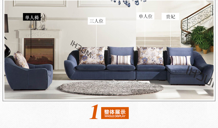 慕驰简约现代布艺沙发贵妃组合沙发客厅可拆洗布沙发家具S035B