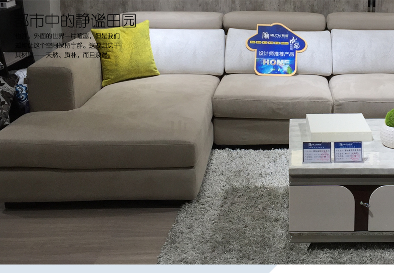 慕驰现代简约布艺沙发小户型L形乳胶沙发贵妃组合客厅转角棉麻沙发可拆洗S070C