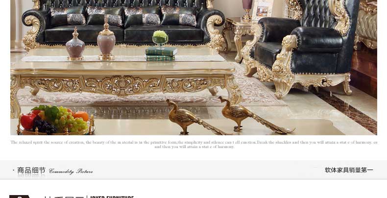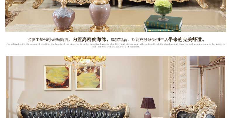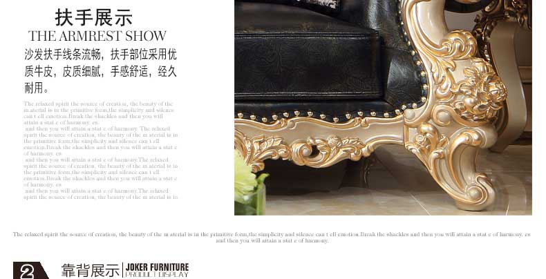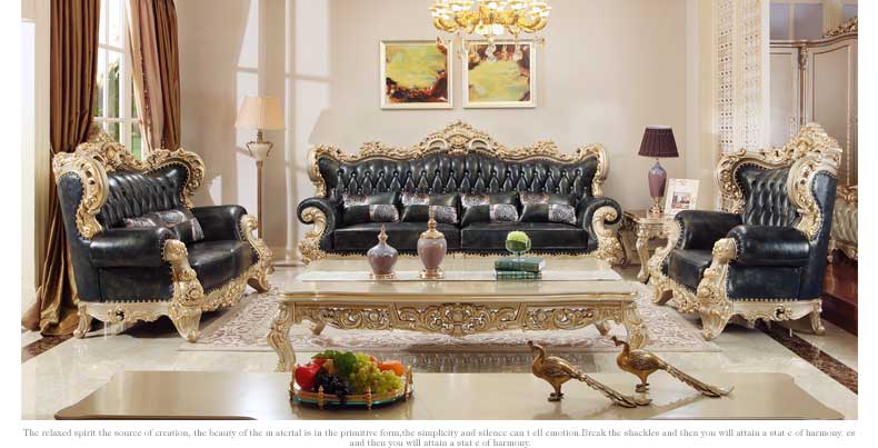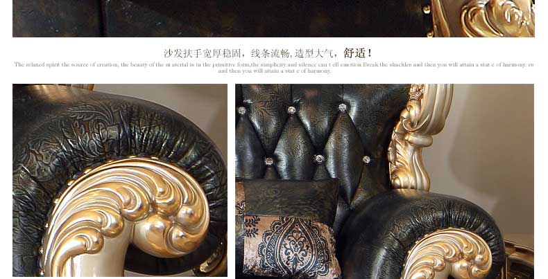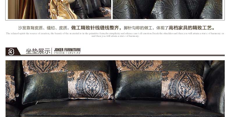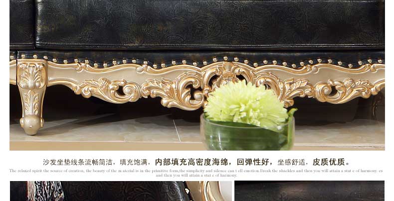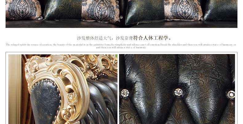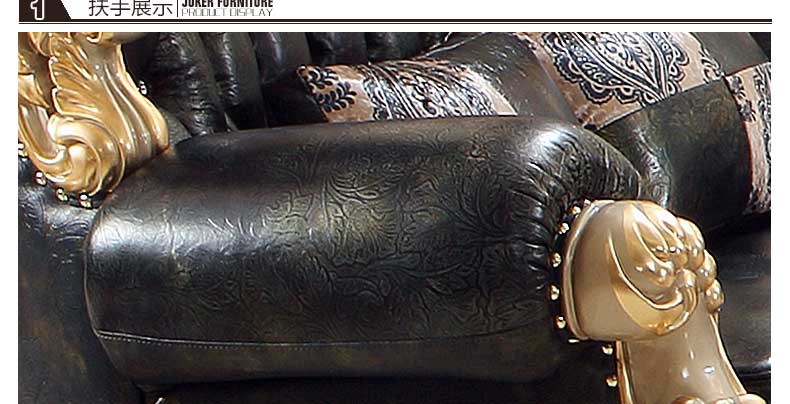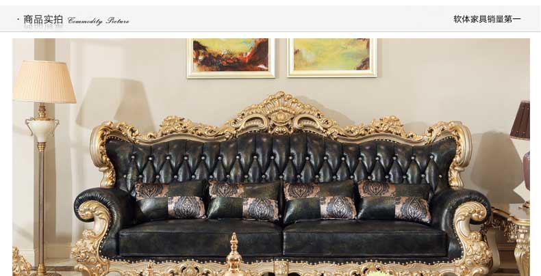 万特美家欧式皮艺沙发组合 实木雕花欧式沙发大小户型客厅沙发K888