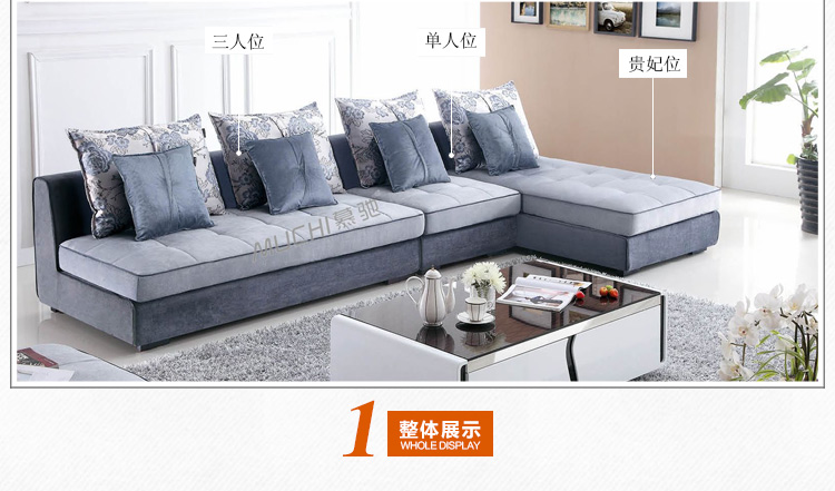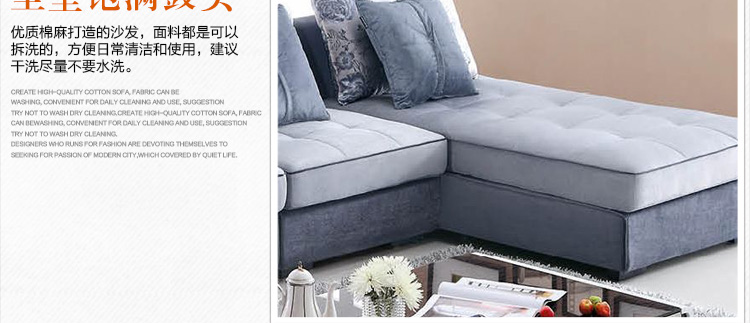 慕驰布艺沙发大小户型可拆洗简约现代客厅家具布沙发转角贵妃组合沙发S041B