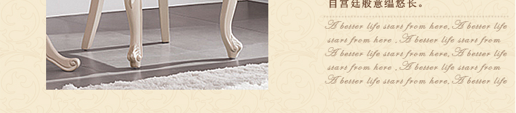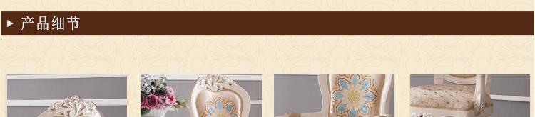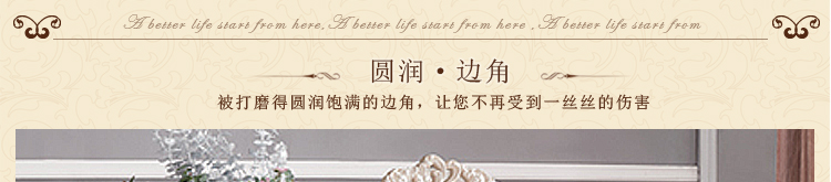 欧式风格家具特点讲究手工精细的裁切雕刻,轮廓和转折部分由对称而富有节奏感的曲线或曲面构成,结构简练,线条流畅,色彩富丽,艺术感强,给人的整体感觉是华贵优雅,十分庄重。